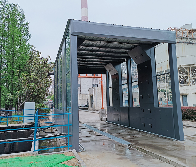 被洗車輛駛離洗車區(qū)域完成沖洗