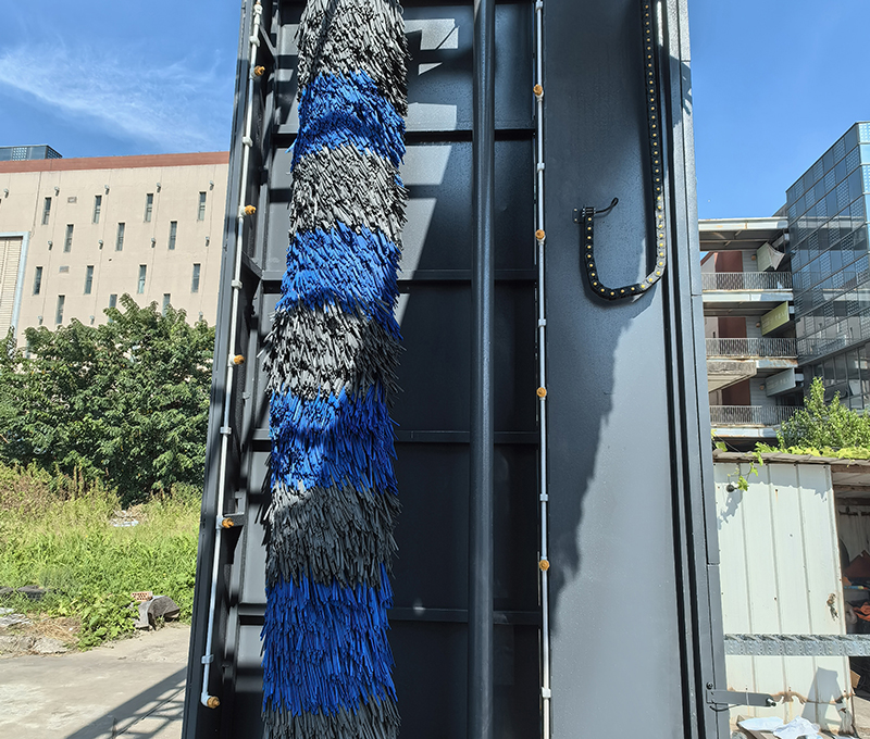 可以根據需要,選擇單程清洗或往復清洗功能,并可選擇清洗過程中是否使用頂刷清洗車頭、車尾或車頂。清洗后的水經過處理后循環使用。具有自動與手動控制功能并能選擇是否使用清洗劑清洗,同時具有多項安全保護功能。(雙刷結構,頂部由高壓水沖洗)